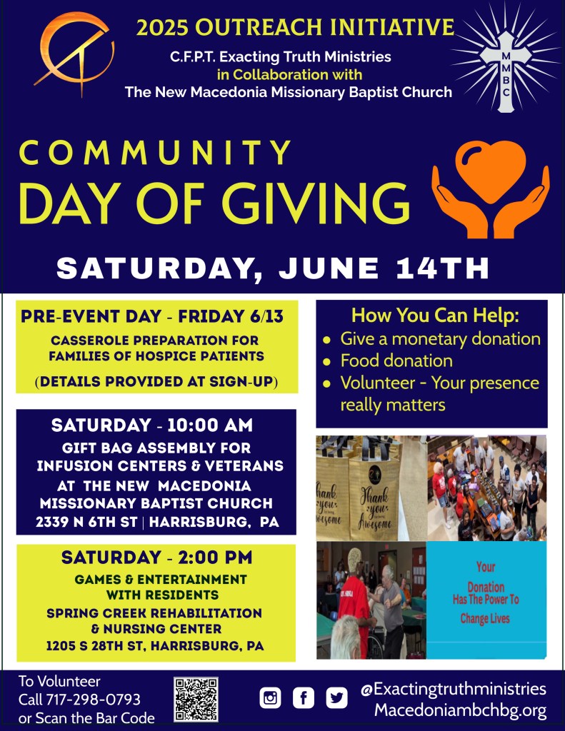 Hosted by C.F.P.T. Exacting Truth Ministries in collaboration with The New Macedonia Missionary Baptist Church