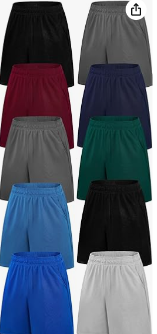 | Men’s Basketball/Workout Shorts Large | ![]() | $45.99 (10-Pack) | Link on Amazon |