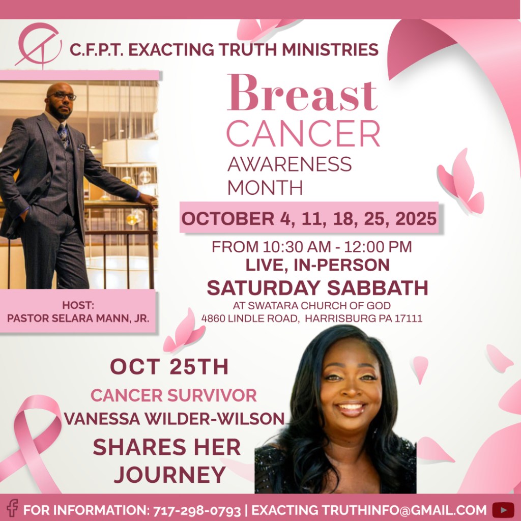You are invited to join Pastor Selara Mann, Jr. and Exacting Truth Ministries for Live, In-Person Saturday Sabbath worship on January 18th at 10:30 AM!